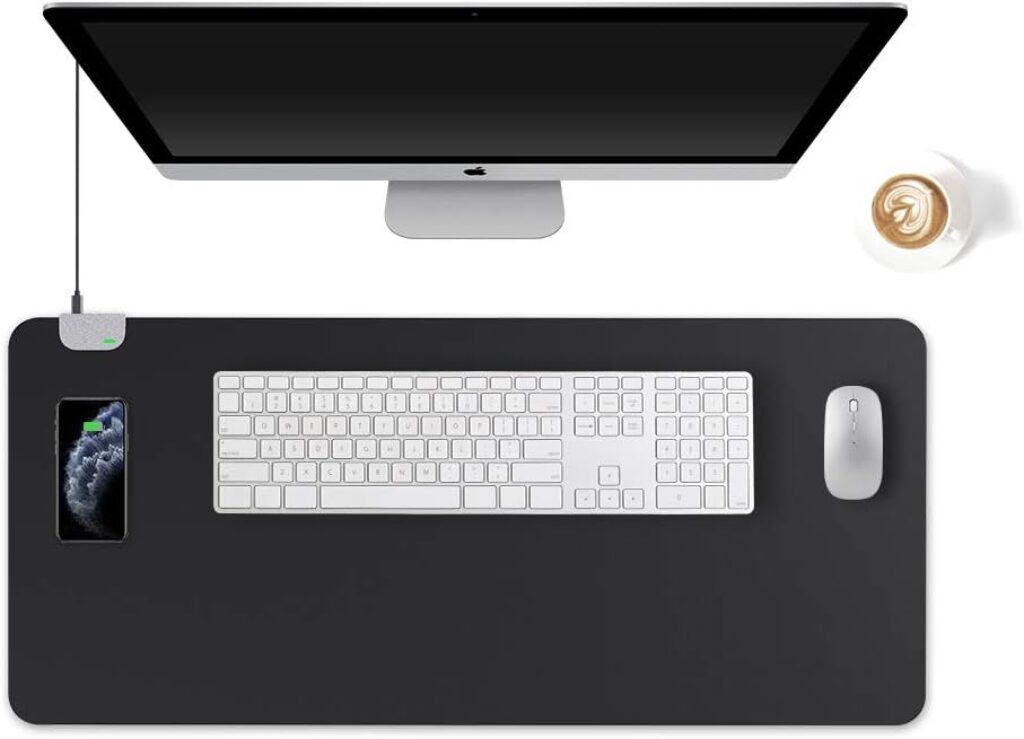 Upgrade your workspace with the ultimate desk pad, offering a smooth writing surface and wireless charging for your phone.